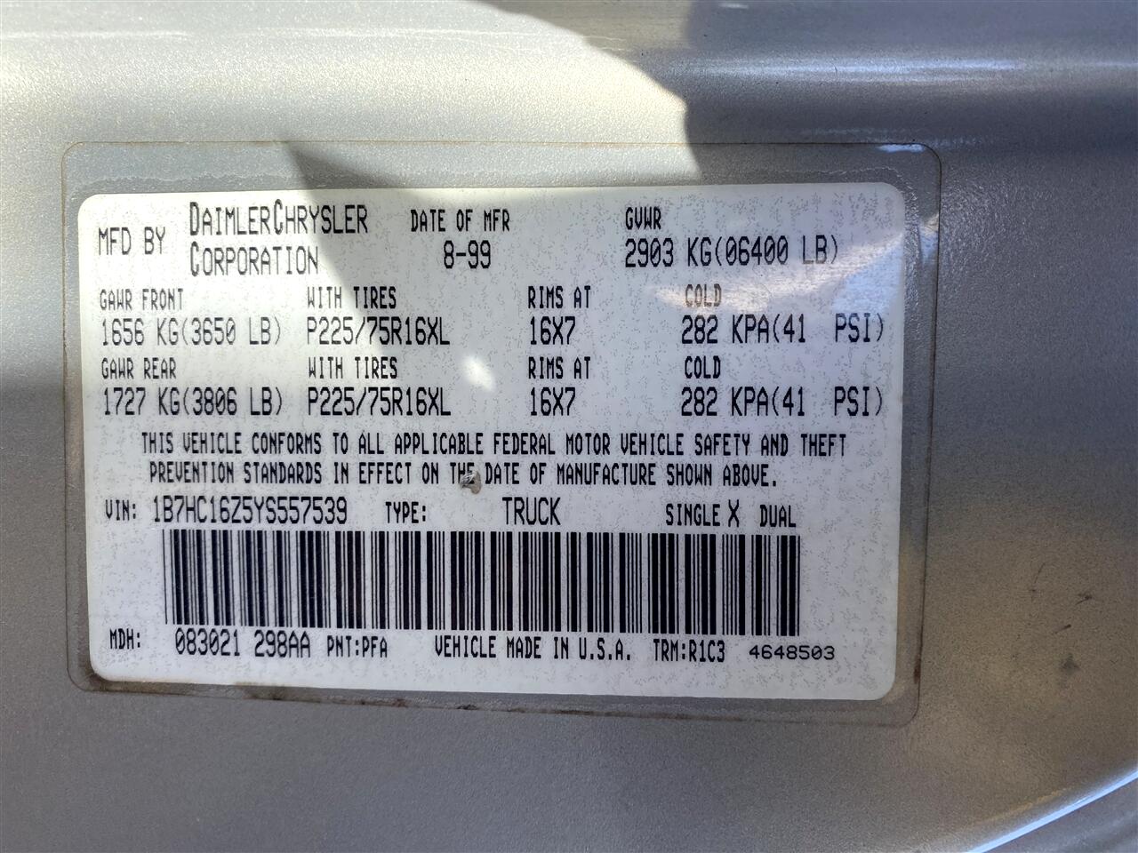 2000 Dodge Ram 1500 2dr Reg Cab 119 WB