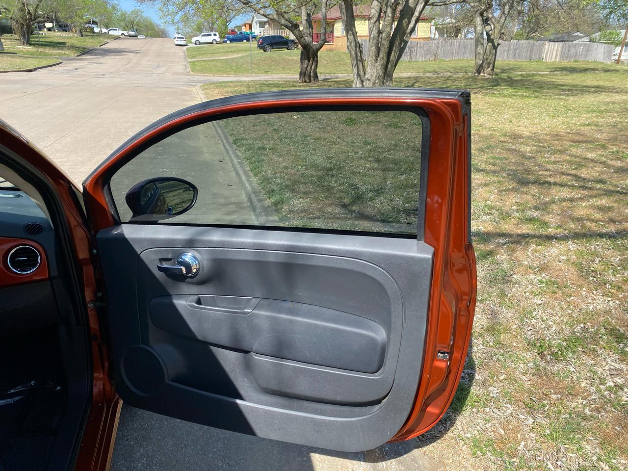 Hop in and buckle up for a lively ride in this zesty Orange 2013 Fiat 500! This compact car packs a punch with a Carfax report available upon request to assure you of its history. The vibrant exterior is sure to turn heads as you cruise around town, while the rear spoiler adds a sporty touch to your journey. Slip behind the wheel and discover a world of convenience with power windows and keyless entry at your fingertips. Stay in control with features like traction control and vehicle stability control system, ensuring a smooth and safe ride every time. Let the CD player serenade you on your drive, while the tilt steering column and cruise control make for a comfortable and enjoyable experience. With automatic headlights and daytime running lights, you'll be ready for any adventure that comes your way. So why wait? Come test drive this spirited Fiat 500 and let the good times roll!Vehicle Located at Hi-Tech Motors 602 South Sheridan Rd Tulsa Oklahoma